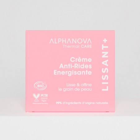La crème anti-rides énergisante Alphanova Thermal Care hydrate, lisse et affine le grain de peau.