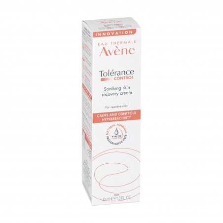 Tolérance Control crème apaisante pour peaux hypersensibles, réactives, intolérantes ou allergiques calme la peau en 30 secondes*. Grâce au D-Sensinose™ ultra-calmant, nouvel actif postbiotique breveté**, ce soin soulage les sensations d’échauffement, de tiraillements, picotements, d’inconfort. La peau est intensément hydratée et sa barrière restaurée en 48h***. Ce soin haute tolérance sans parfum ni conservateur, bénéficie d’un nouveau tube Cosmétique Stérile® qui préserve la formule de l’air extérieur et des bactéries.*Satisfaction des utilisateurs, 25 sujets, 3 mois, 2 applications par jour. **Brevet déposé.***Test ex-vivo sur épidermes cultivés en condition hydrique réduite.