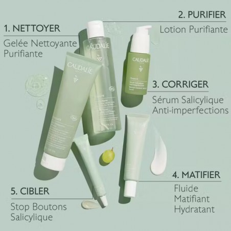 Premier geste beauté indispensable contre les imperfections, la Gelée Nettoyante Purifiante enrichie en acide salicylique naturel, Polyphénols de raisins et huiles essentielles bio* nettoie et purifie la peau sans la dessécher. Sa formule allie douceur et efficacité pour resserrer les pores, réduire l’excès de sébum et diminuer visiblement les imperfections.