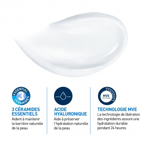 – 3 Céramides Essentiels : tous les produits CeraVe contiennent les 3 céramides essentiels (1, 3 et 6-II) dont une peau saine a besoin pour restaurer et maintenir sa barrière protectrice naturelle.