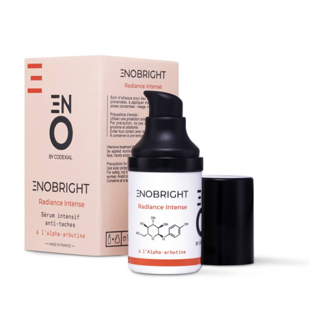 Best-seller de la gamme Enobright Radiance Intense est un sérum intensif anti-taches indiqué en soin d’attaque pour atténuer et réduire les marques pigmentaires disgracieuses et prononcées visibles sur la peau quelle que soit leur nature : soleil, âge, grossesse ou acné.