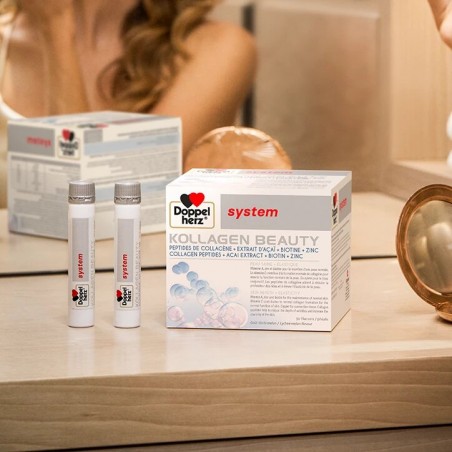 Doppelherz system KOLLAGEN BEAUTY est un complément alimentaire haut de gamme conçu pour une consommation sur la durée.
