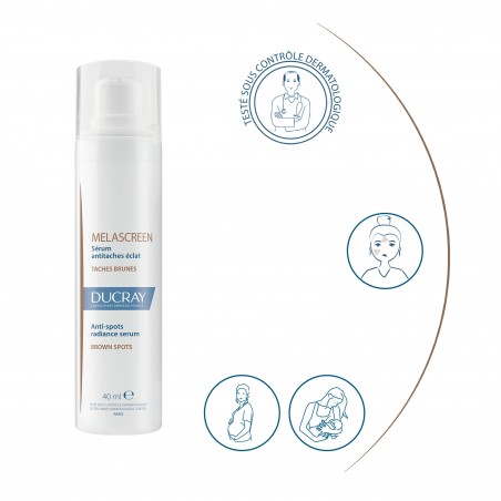 • En complément, appliquer une protection solaire spécifique quotidienne telle que les soins antitaches protecteurs SPF50+ MELASCREEN
