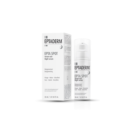 Sérum cosmétique développé pour une maîtrise efficace de la production excessive de mélanine, responsable des taches cutanées. Grâce à sa formule riche en cosmétiques au grand pouvoir actif, EPTA SPOT NUIT permet une réduction visible des taches, donnant à la peau plus de luminosité et d’homogénéité. La texture lisse et non grasse de EPTA SPOT NUIT garantit un parfait confort d’application et assure une excellente tolérance.