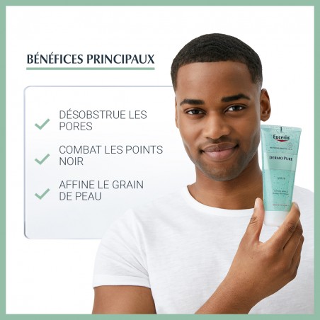 Grâce à sa formule enrichie en Acide Lactique et qui renferme des micro-particules, EUCERIN DermoPure Gommage désobstrue les pores, contribue à combattre les points noirs et les imperfections et affine le grain de peau.